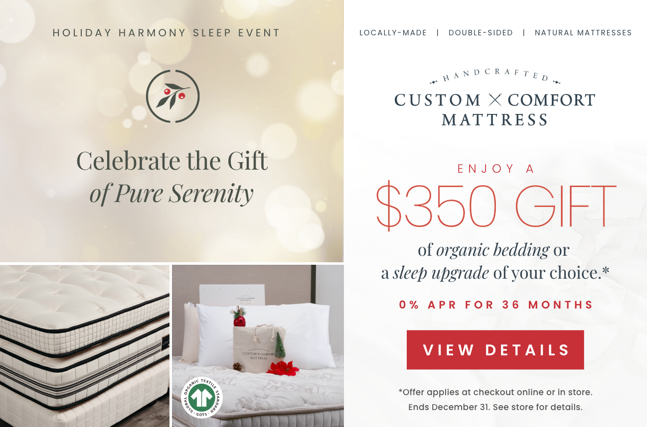 Because we build each bed ourselves, right here locally, we know you and your loved ones will get a higher quality, healthier sleep on a mattress handcrafted by Custom Comfort Mattress. And with our 365-night Comfort Guarantee, you can rest easy knowing that you’ve made the right choice for a better night’s sleep, confident that the mattress you selected is the perfect fit just for you, and that it will stand the test of time.